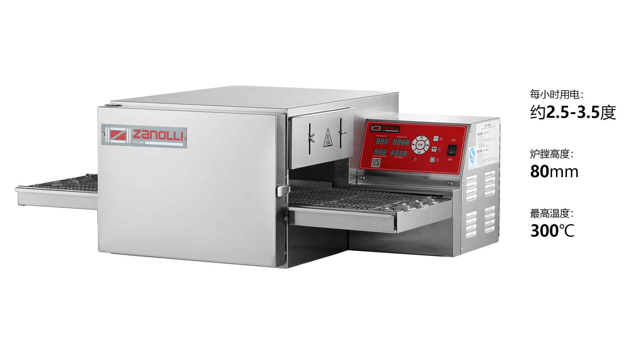 桌面型链式烤炉,最大温度可达300℃,9寸披萨一小时产量高达28个