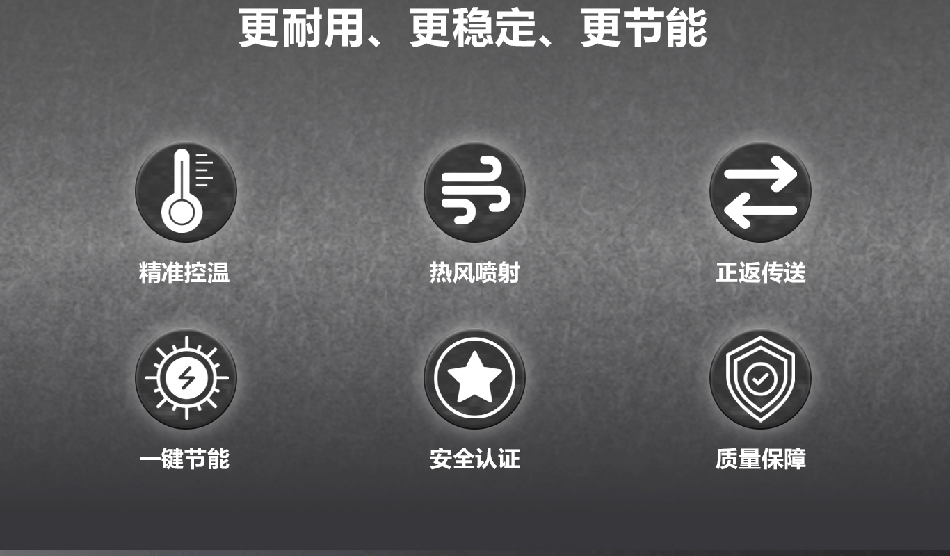 桌面型链式烤炉,上下独立变频,温度可达320℃。
